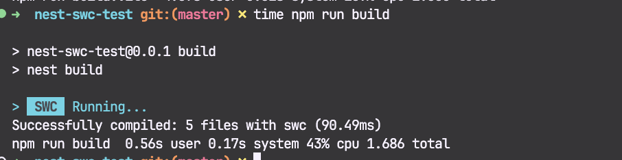 - notice that add builder: swc in the nest-cli.json file before run this command