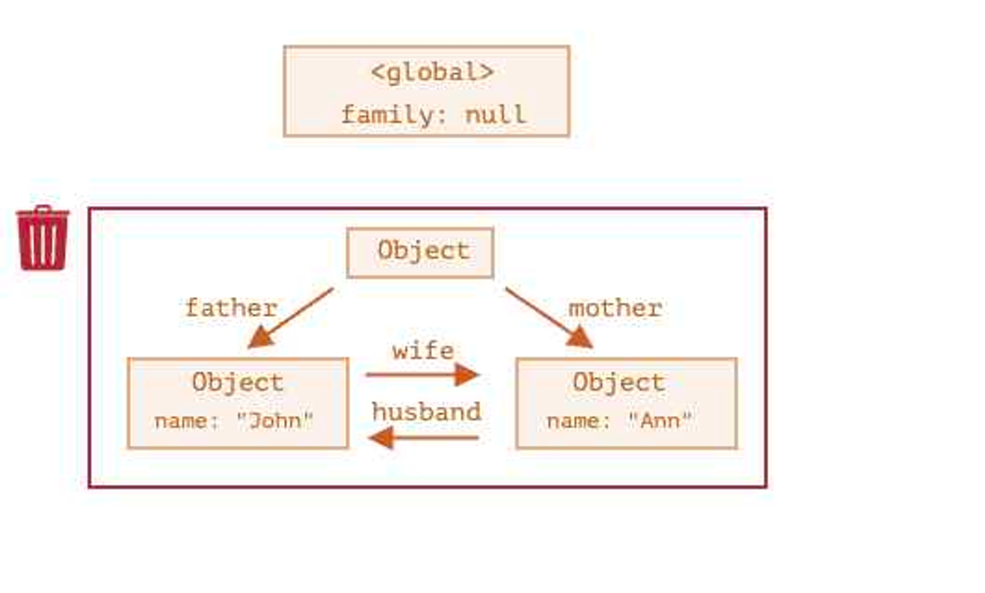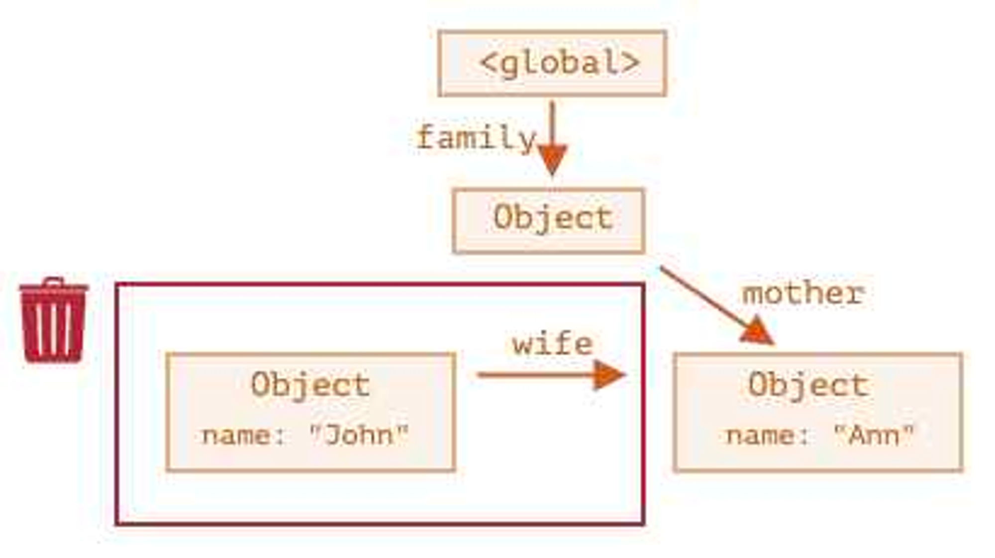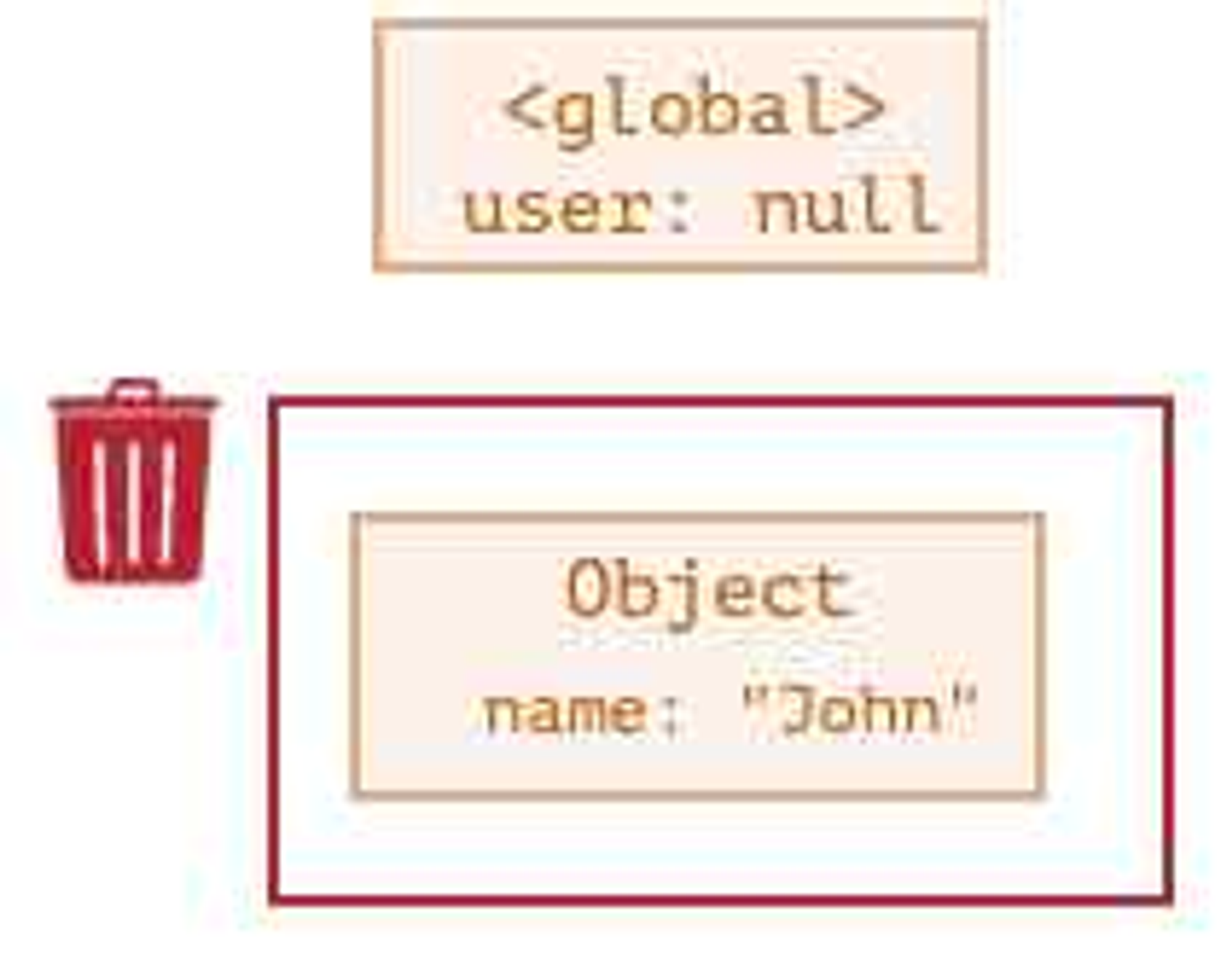 However, if both references are deleted, {name: "John"} will no longer have any references to it.